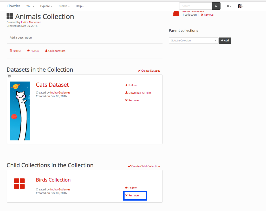 Removing a Dataset from a Collection¶