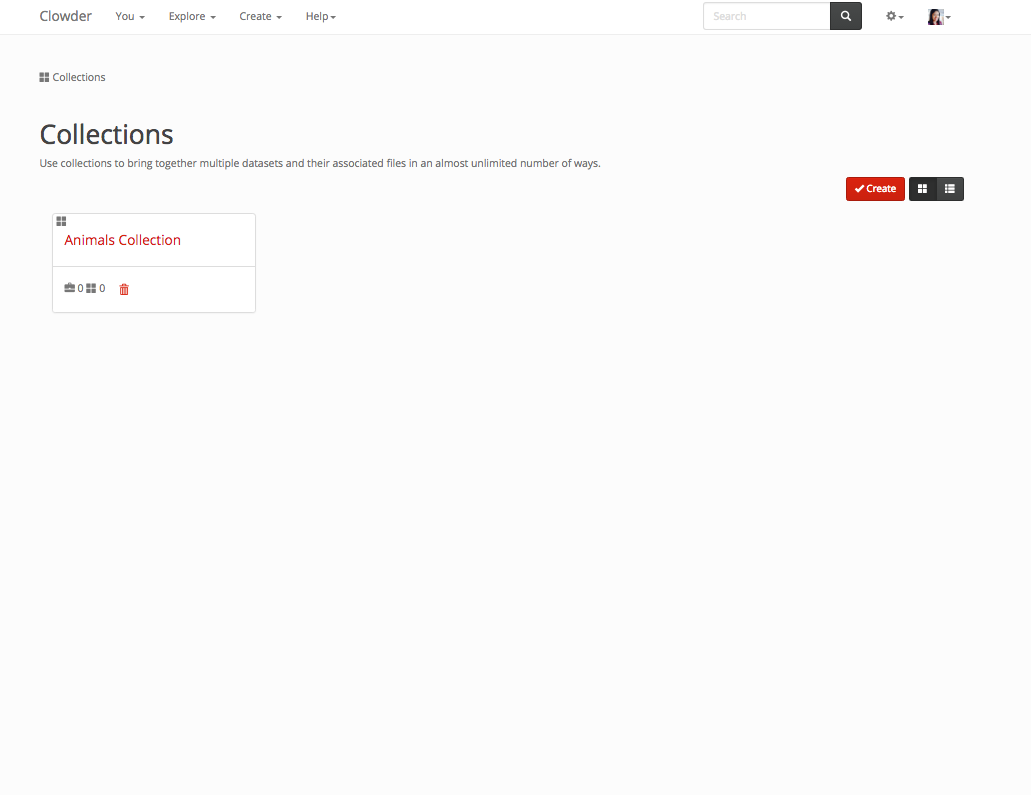 To create a collection from the list of collections page click on the create button in the top right. The list of collections is displayed below.