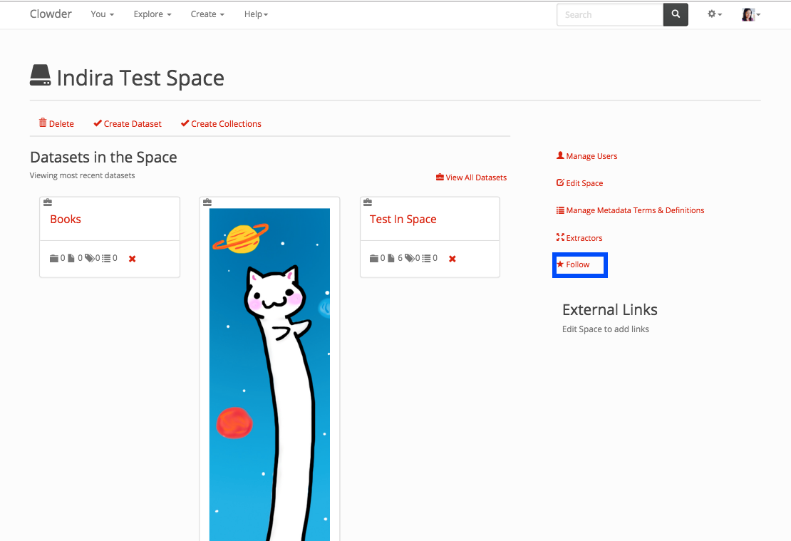 You can follow spaces, collections, datasets, files and users.